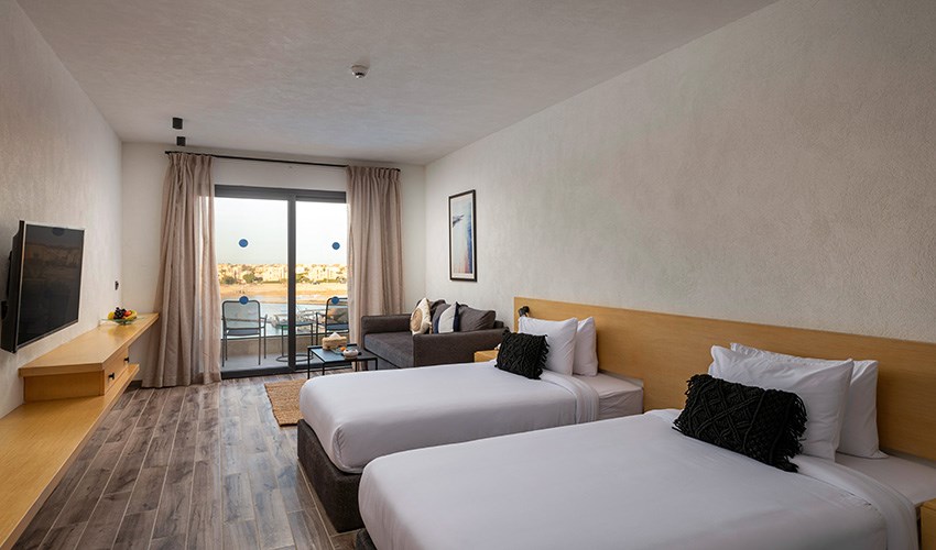 Residences El Gouna je skutečným rájem na břehu nádherné laguny Rudého moře, kde se snoubí moderní design s klidnou atmosférou pro maximální pohodlí a relaxaci. Díky své strategické poloze v srdci El Gouny, jen 3 kilometry od centra a 3 kilometry od dalších pláží, je ideálním místem pro objevování všech krás tohoto letoviska. Centrum Hurghady je vzdálené přibližně 30 kilometrů. Hotel potěší i milovníky dobrého jídla – restaurace nabízí pestrou paletu mezinárodních i místních specialit, které uspokojí i náročné gurmány. Hosté mohou relaxovat ve Spa centru, užít si masáže a wellness procedury, zaplavat si v nekonečném bazénu s výhledem na lagunu, zacvičit si ve fitness centru nebo si odpočinout v sauně. Díky klidné atmosféře i možnostem aktivního vyžití je resort skvělou volbou pro romantickou dovolenou, rodinný pobyt i odpočinkový únik od každodenního shonu. Ochotný personál dbá na každý detail a postará se o to, aby váš pobyt byl... Celý popis