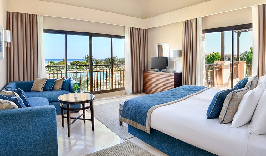 rodinné pokoje Deluxe až pro 4 osoby s výhledem na moře (3 místnosti)