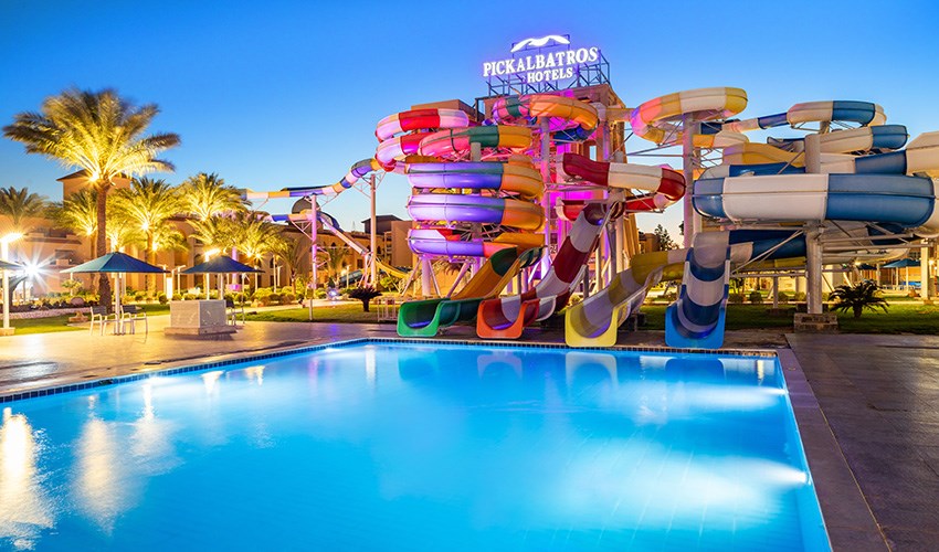 Pickalbatros Aqua Park Resort je moderní rodinný resort s rozlehlým aquaparkem pro děti i dospělé. Resort se nachází v blízkosti pláže a nabízí komfortní ubytování v pokojích vybavených klimatizací, televizí, minibarem a trezorem. Každý pokoj má balkon nebo terasu. Hosté mohou využít několik restaurací, wellness centrum a širokou nabídku sportovních aktivit. Pro děti je připraven bohatý program v dětském klubu. Hosté využívají krásnou písčitou pláž sousedního hotelu Beach Albatros Resort, na kterou jezdí pravidelně hotelový shuttle bus. Resort je vhodný i pro páry, které hledají kombinaci zábavy a relaxace. Vybavení: vstupní hala s recepcí, výtah, Wi-Fi restaurace, bar, bar u bazénu, bar na pláži bazén, dětský bazén, aquapark, sluneční terasa (lehátka a slunečníky u bazénu i na pláži zdarma) animační programy, dětský klub, fitness centrum hotelový minibus na pláž dětské hřiště, tenis, stolní tenis, billiard za poplatek: wellness... Celý popis